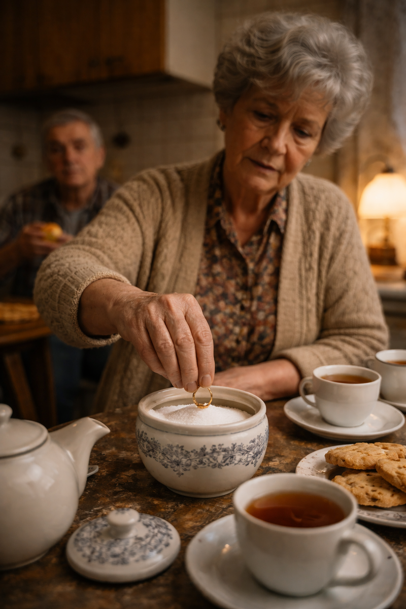 Не после скандала. Не после чужого звонка ночью. Не со словами “всё, хватит” и не под телевизионную бурю с битьём посуды. Просто стояла у стола, насыпала сахар в чашки, поморщилась, будто ей что-то мешает, потянула золотой ободок с пальца и положила его в сахарницу так буднично, словно это не обручальное кольцо после сорока лет брака, а серёжка, которая натирала ухо.