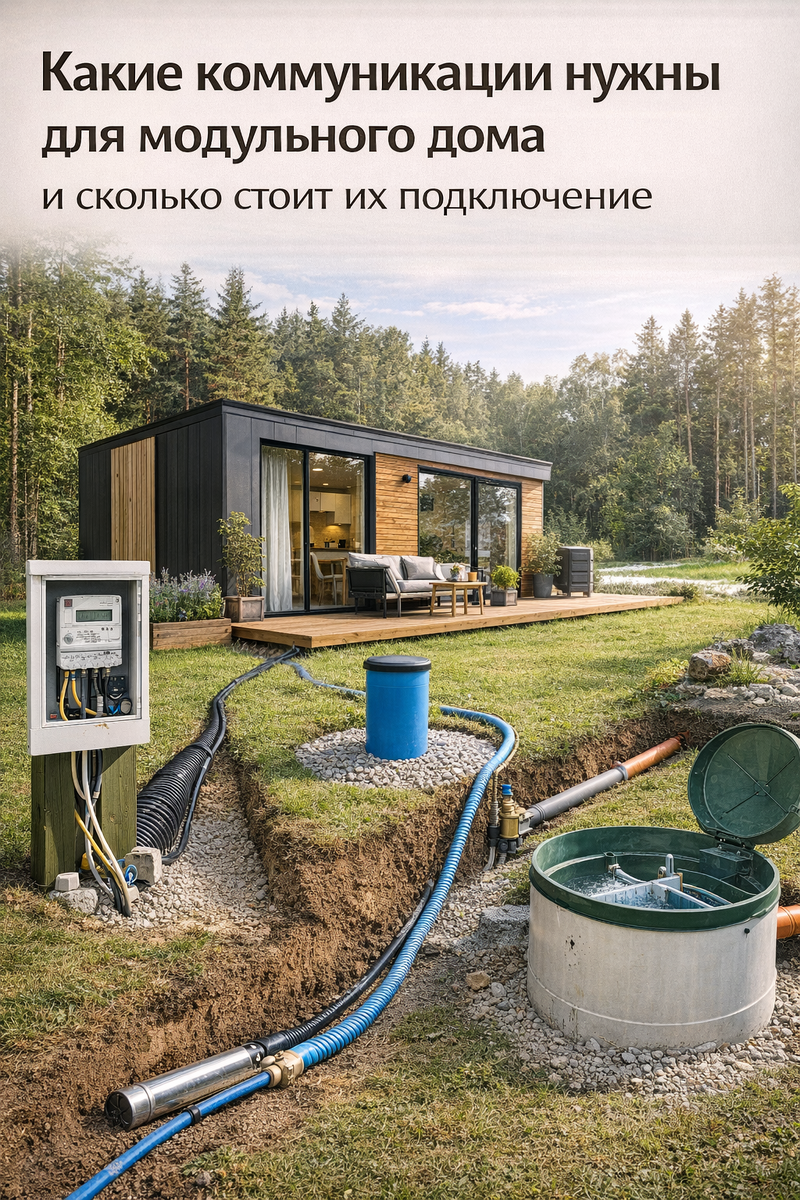 Какие коммуникации нужны для модульного дома — один из ключевых вопросов перед покупкой. Многие смотрят только на сам дом, но забывают, что без инженерии жить в нём невозможно. Разберём, что обязательно нужно и сколько это реально стоит. Без электричества дом просто не функционирует. Что входит: Для модульного дома 36 кв.м обычно достаточно мощности 5–10 кВт. Есть два варианта: 1. Центральное водоснабжение