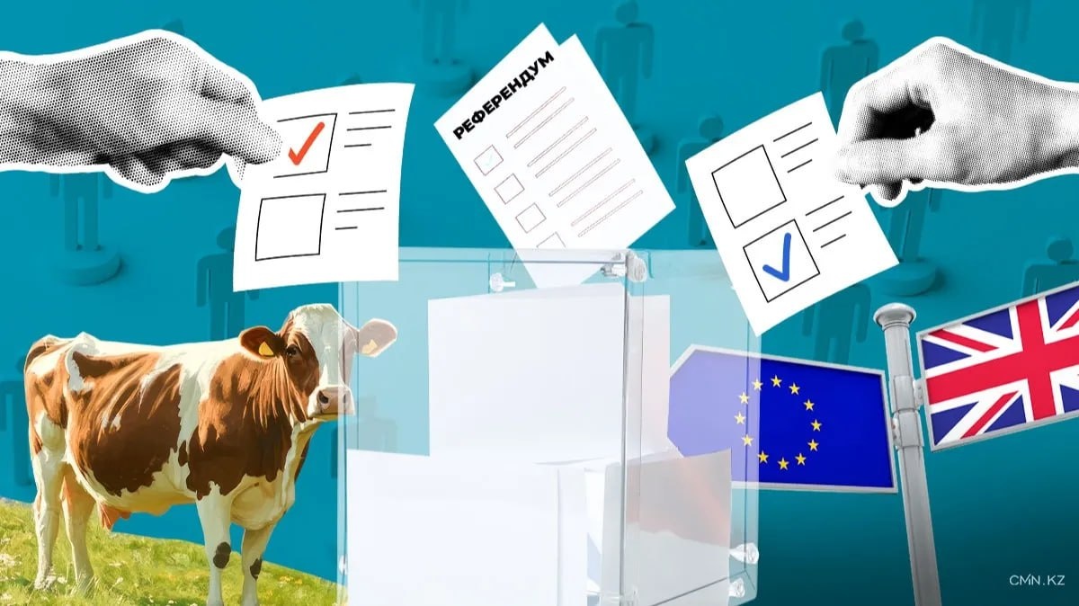 Выход из Евросоюза, новый флаг и коровьи рога: самые интересные референдумы мира Накануне референдума корреспондент CMN.KZ решил окунуться в мировую историю и вспомнить самые интересные и необычные случаи проведения голосований. Спойлер – иногда один короткий вопрос в бюллетене становился отражением огромных общественных споров, может обрушить валюты и полностью поменять направление развития государства. Читайте здесь. Коллаж: CMN.KZ t.me/CMN_KZ