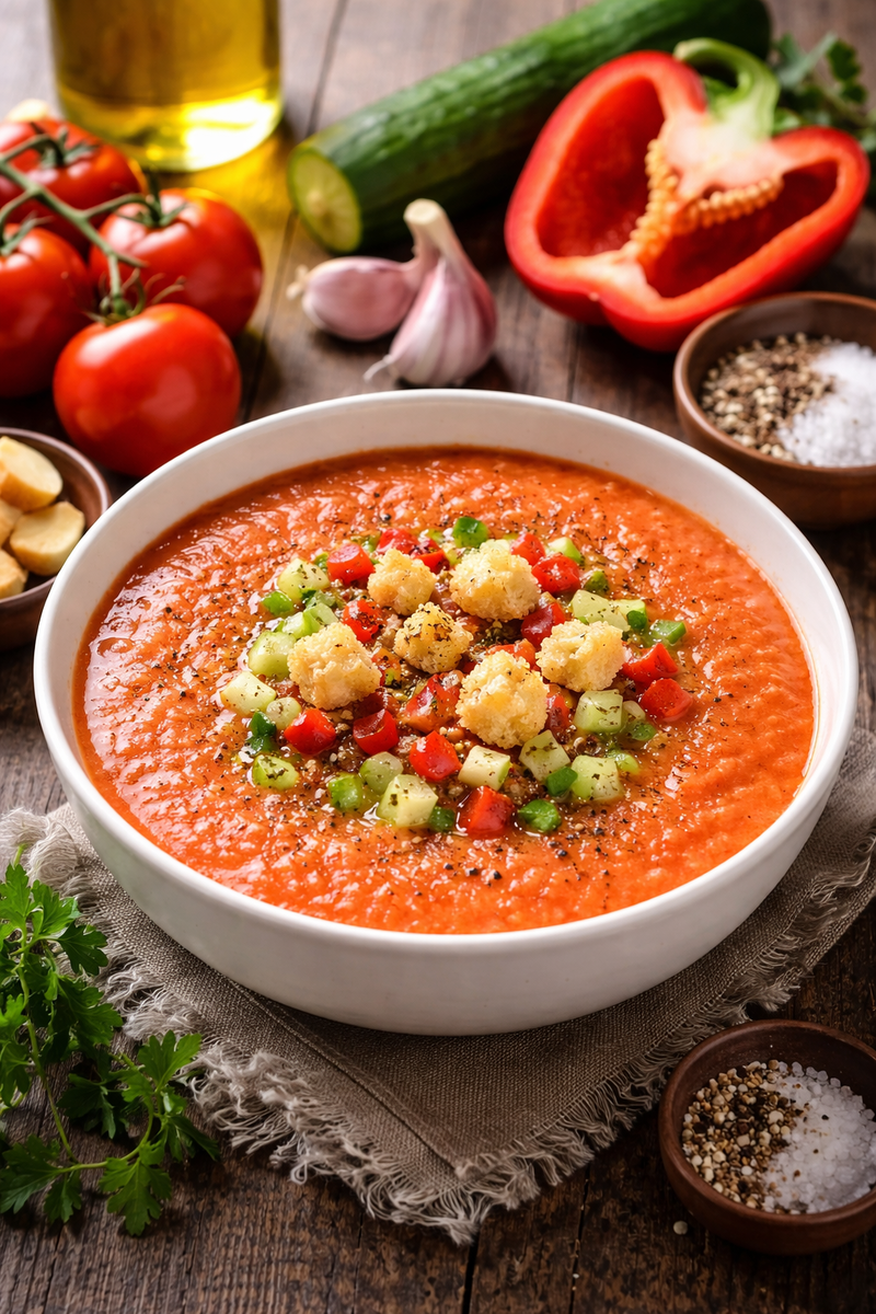 Сегодня вы узнаете, каким на самом деле должен быть вкус этого легендарного блюда. Подпишитесь на телеграм канал «Вкус мира». Там я публикую редкие рецепты разных стран, кулинарные секреты шефов и истории блюд, которые знают во всем мире. Ссылка на канал находится ниже. Почему настоящий гаспачо появился вовсе не из помидоров Гаспачо родился на юге Испании, в жаркой Андалусии. Летом там стоит сильная жара, поэтому людям нужна была простая еда, которая освежает и при этом насыщает. Первые версии этого супа готовили из хлеба, чеснока, оливкового масла и винного уксуса. Все ингредиенты растирали в ступке, добавляли холодную воду и получали густой освежающий суп. Помидоры появились в рецепте значительно позже, когда их начали активно выращивать в Испании. Именно тогда гаспачо получил свой знаменитый красный цвет и стал тем блюдом, которое сегодня знают во всем