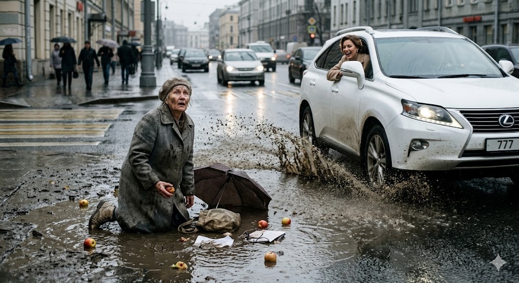 Мимо остановки, обдав людей облаком брызг, пронесся сверкающий черный внедорожник. Марина инстинктивно отшатнулась, прикрывая лицо рукой. Грязная вода не достала до нее, но сердце сжалось от ужаса и стыда.