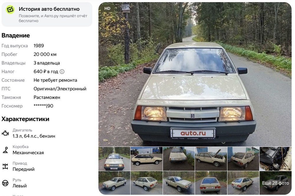 «Российская газета» выяснила, что в Московской области выставили на продажу ВАЗ-2109, который с 1989 года проехал не так и много — 20 тысяч км. «Автомобиль в родном исполнении, без ДТП и окрасов. В салоне запах нового авто. ПТС оригинал, выдан в 2004 году взамен книжки годов СССР. С ценой не ошибся», — говорится в объявлении. Судя по фото, машина действительно в отличном состоянии. Под капотом у «девятки» двигатель 1,3 литра, который выдает 64 л.с. Коробка — механика. Привод — передний. Ранее «РГ» рассказывала о том, что в Перми на продажу выставили ВАЗ-2113, который с 2010 года проехал 17 900 км.