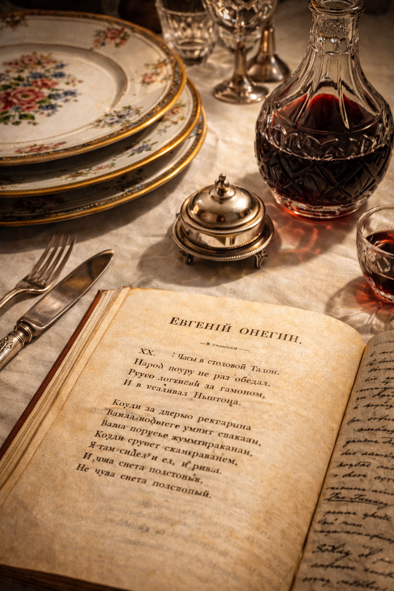 Он понимал, что еда — это не биология, а семиотика. Что человек выдаёт себя не только тем, что говорит или носит, но и тем, что ест и где. В «Онегине» гастрономические детали — точные социологические маркеры.
