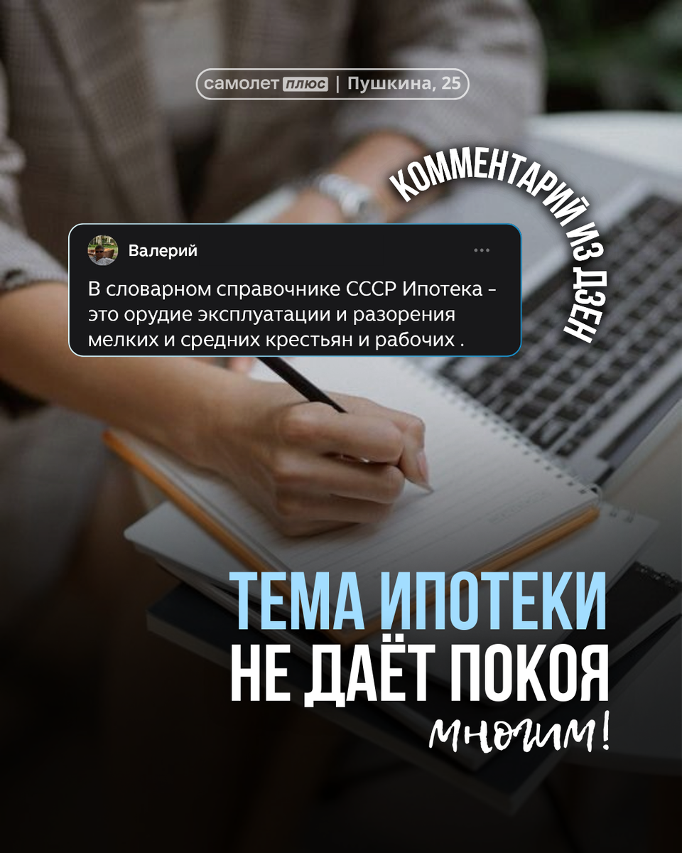 В одном из словарных справочников СССР ипотека описывалась как «орудие эксплуатации и разорения мелких и средних крестьян и рабочих». Такой комментарий мы недавно получили под нашим рилс на тему: