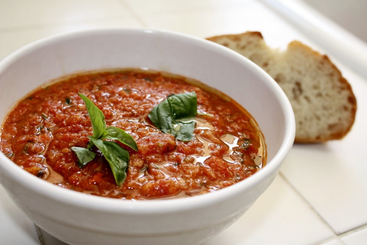 Только зимняя Тоскана, готовить это блюдо тамошним знойным летом никому и в голову не придёт, вот сейчас в самый раз. Элементарно – банка пассаты, овощные консервы контрсанкции, к счастью, пощадили. Из помидоров Сан Марцано, это важно. Хлеб – погрубее и почерствее. Если булочник из злокозненности подсунет свежий – придётся подсушивать принудительно. Остальное тоже существенно, но по ходу дела. В сотейник оливкового масла для жарки, в него, как разогреется, красного луку крошкой, чесноку раздавить, красный перчик, если случится. Как запахнет- томатное туда прямо из банки. Банка в аккурат на одного едока, там уж сочтёте. Минут десять, чтоб глухо забулькало. Хлеб кусочками-обломками. Воды. Можно бульон, но он добавляет неуместной аристократичности, как барышне в поход на шпильках пойти. Самый малый вперёд, на остаточной тяге доходить полчаса. Соль-перец, с помолом не усердствуйте. Базилику – от души. Вот чтоб прямо пахло, такой вот горкой зелень порежьте. Замешать, а пару листиков чтоб св