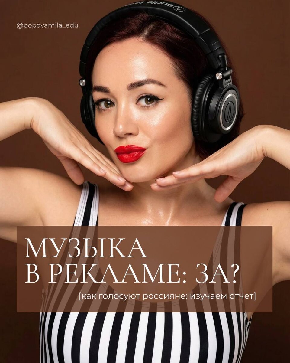 ? Да, так показало исследование музыкального бюро (uni)verse и компании Invite Research. В нём приняли участие 600 россиян в возрасте 20–45 лет, из в 16 крупных городов, включая Москву и СПб. - 70% считают, что реклама с участием известных музыкантов выглядит более яркой и лучше запоминается. - 50% респондентов такая реклама нравится больше, чем обычная. - 56% опрошенных обращают внимание на стиль жизни музыканта, который участвует в рекламе бренда - 63% считают, что такие рекламы делают бренд более современным Из примеров чаще всего люди вспоминают: - ролики Ozon с участием Дмитрия Маликова и Полины Гагариной - «Магнит Косметик» и «МегаФон» с Люсей Чеботиной - Диму Билана в разных рекламах Каждый второй в опросе отметил, что скорее обратит внимание на рекламу именно с музыкой, чем без неё. А как вам музыка в рекламе? Какую больше запомнили Вы? Мила про обучение и продвижение | 👥Дайджест постов | | 💬 Консультация по вопросам 📱Найти меня в MAX https://max.ru/id272211958290