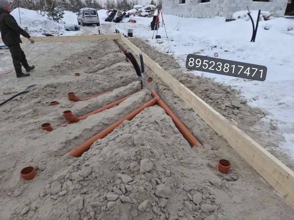 С выводами всех фановых на песчаной подушке #плита300