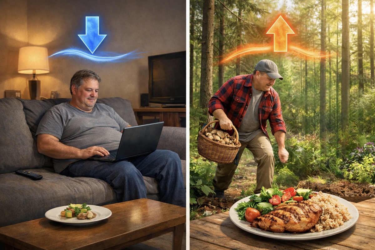 То есть, питание зависит не только от того, любите ли вы кашу или хлеб, а от того, сколько энергии вы реально тратите. Поэтому один и тот же набор продуктов может в один день быть уместным, а в другой — уже избыточным. И здесь меняется не только меню, но и размер порций.