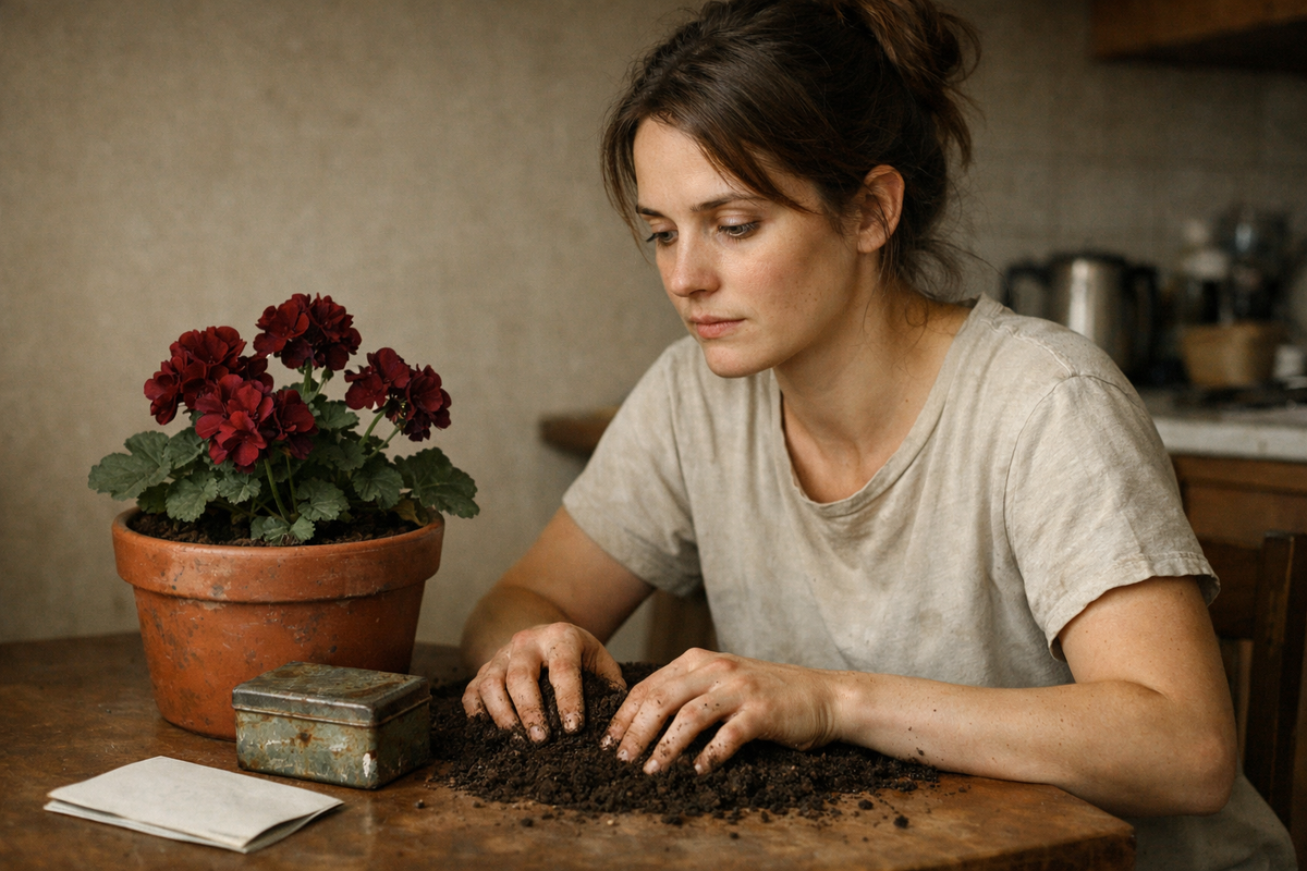 Новый горшок я купила заранее – немного больше старого, тот же терракотовый оттенок, без сколов и трещин. Субстрат для пеларгоний с хорошим дренажем. Всё как нужно. Я знаю своё дело, и, пока несла горшок домой накануне вечером, думала только об этом – что сделаю правильно, аккуратно, как профессионал.