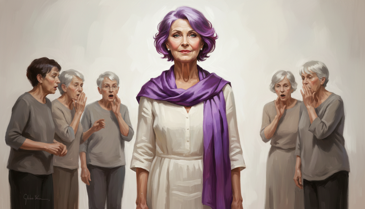 Она покрасила волосы в фиолетовый. Ей семьдесят два года. И именно это — не болезнь, не бедность, не одиночество — стало поводом для семейного скандала. Вот что меня занимает по-настоящему. Мы живём в обществе, которое придумало целый этикет внешности — негласный, но железный. И касается он почти исключительно женщин. Причём с определённого возраста этот этикет превращается в приговор: можно так, нельзя вот так, а вот это — «уже несерьёзно». Откуда вообще взялась идея, что красота имеет срок годности? Если копнуть в историю, окажется, что это изобретение не такое уж древнее. В XIX веке «приличная» женщина после сорока должна была одеваться темнее, причёску носить строже, а любая яркость в образе считывалась как моральная распущенность. Не эстетическая — именно моральная. Румяна и помада ассоциировались с театром и публичными домами. Порядочные дамы красились едва заметно, почти никак. Потом пришёл ХХ век, появилась индустрия красоты, и косметика стала нормой. Но возрастной этикет никуд
