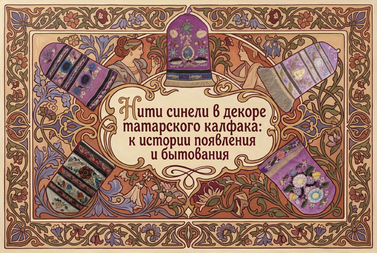 В культуре татарского народа синель заняла особое место как элемент украшения женских головных уборов – калфаков, сшитых из трикотажных полотен, шелка и бархата. Настоящая статья посвящена истории появления синели в декоративно-прикладном искусстве, географии и особенностям использования в татарском традиционном костюме.