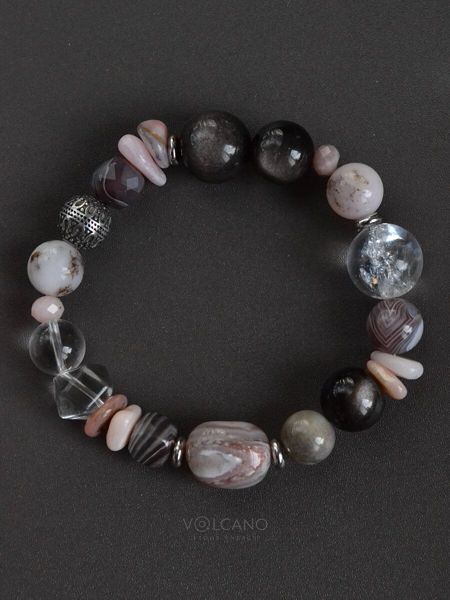 Фактурный, изысканный, благородный, элегантный браслет с люксовыми камнями. Уверенная роскошь, которая ощущается мгновенно. ___ 5600₽ Камни высокого качества: розовый опал ~ агат Ботсвана ~ горный хрусталь ~ океаническая яшма ~ обсидиан lux ПРОДАН ❌