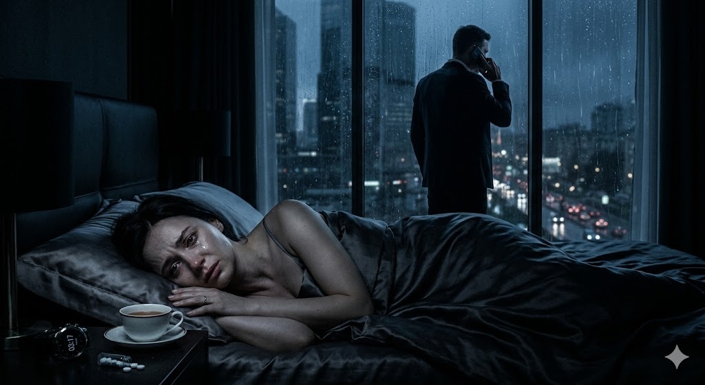 Дождь безжалостно хлестал по панорамным окнам нашей спальни, размывая огни ночной Москвы в дрожащие, холодные пятна. Я лежала на своей половине огромной кровати, укрытая невесомым шелковым одеялом, и молилась лишь об одном: чтобы мое дыхание оставалось ровным, а веки не дрогнули.