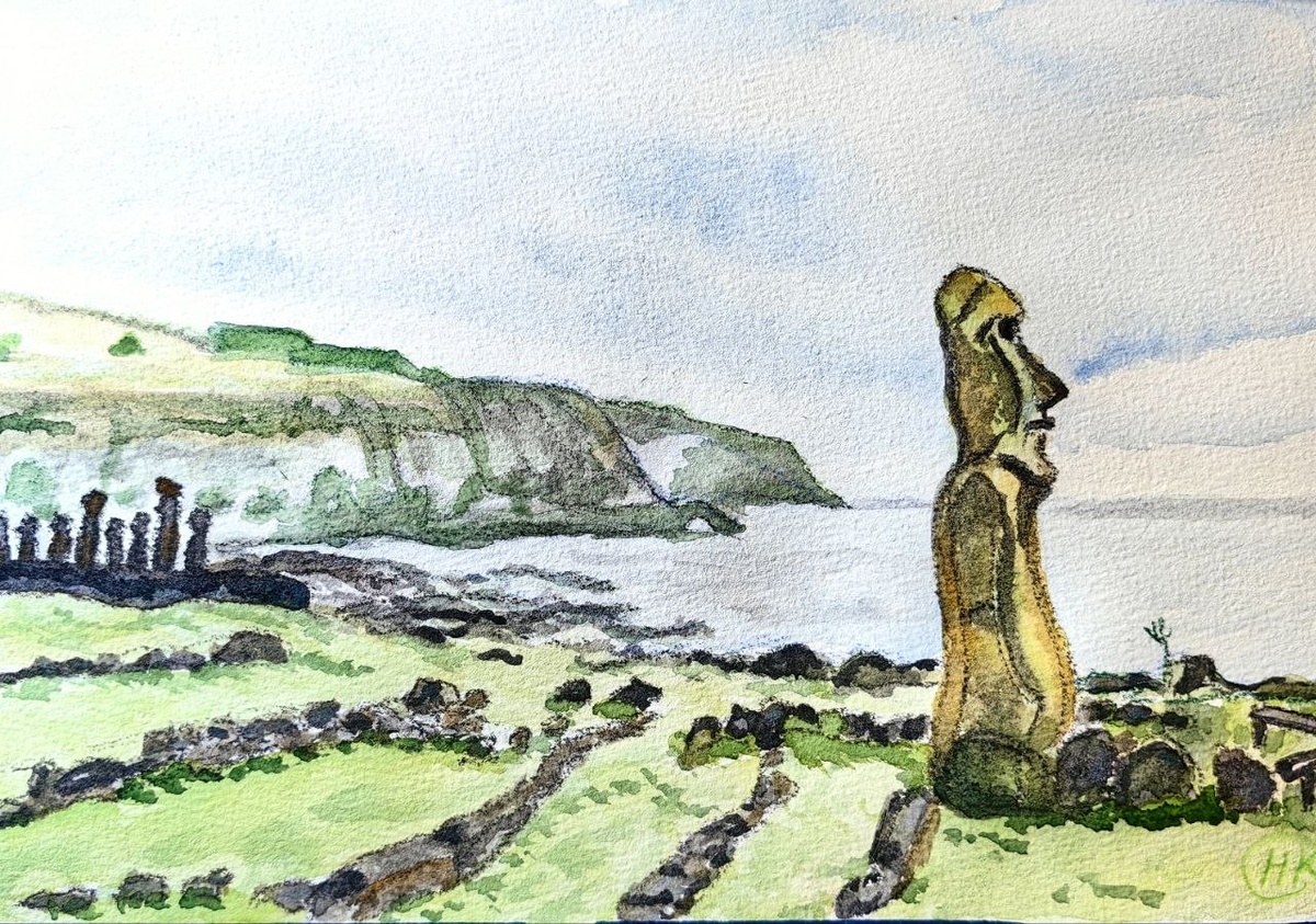 #акварельный пейзаж #остров Пасхи #Чили #маои