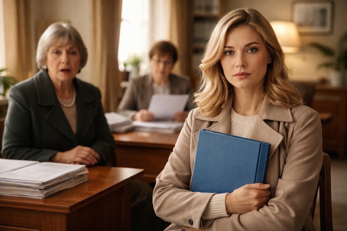 Я сидела напротив и держала на коленях папку. Обычную синюю папку с потёртым уголком. Пальцы скользили по гладкому картону, а ладонь была холодной, словно я пришла не в тёплый кабинет, а на мартовский ветер.