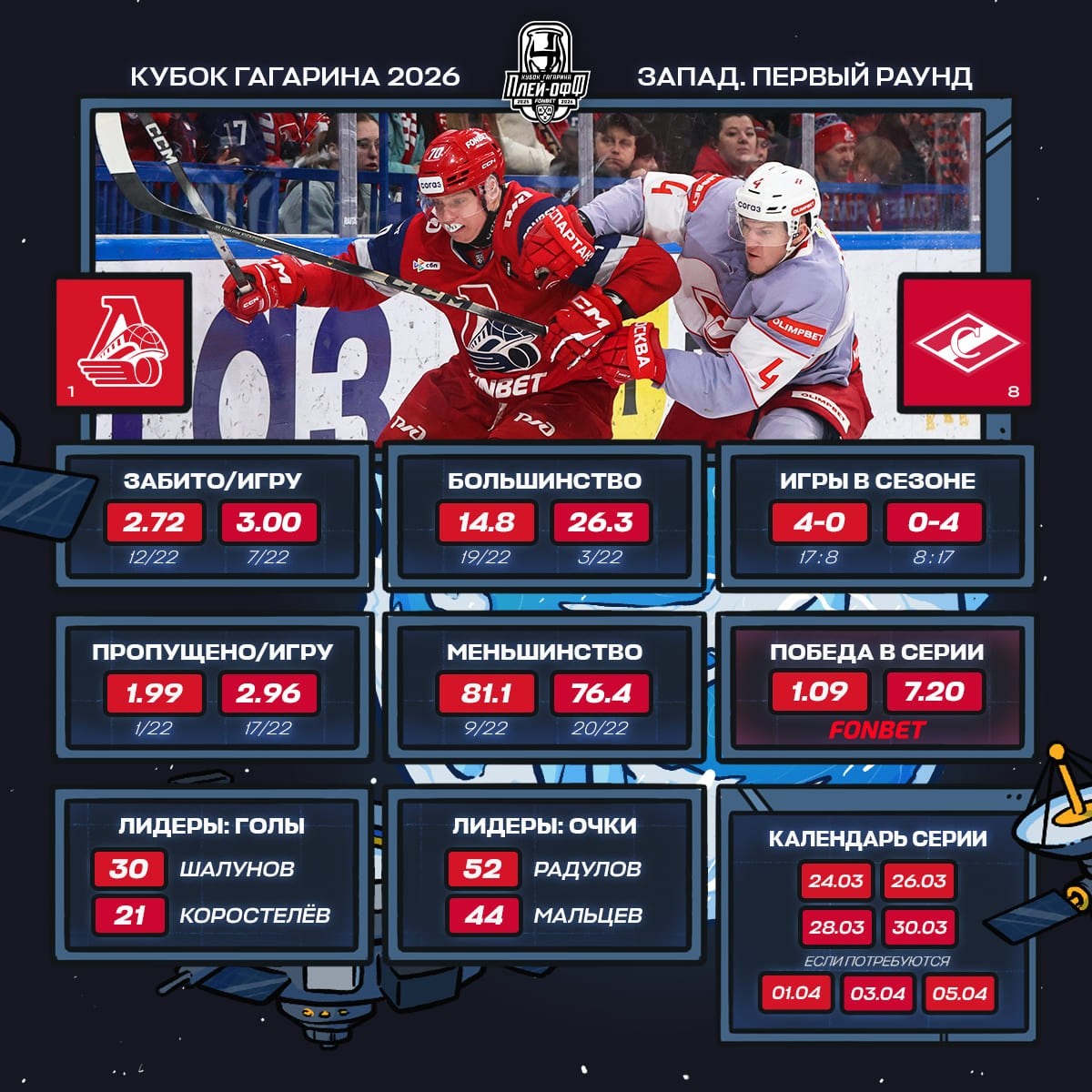 Складывались эти четыре матча по-разному, но неизменно в пользу ярославцев». 🚂🔴 KHL.ru представляет превью пары «Локомотив» x «Спартак», в которой ярославцы практически по всем параметрам превосходят красно-белых — как это обычно и бывает при сравнении первой команды конференции с восьмой. 🏆#КубокГагарина