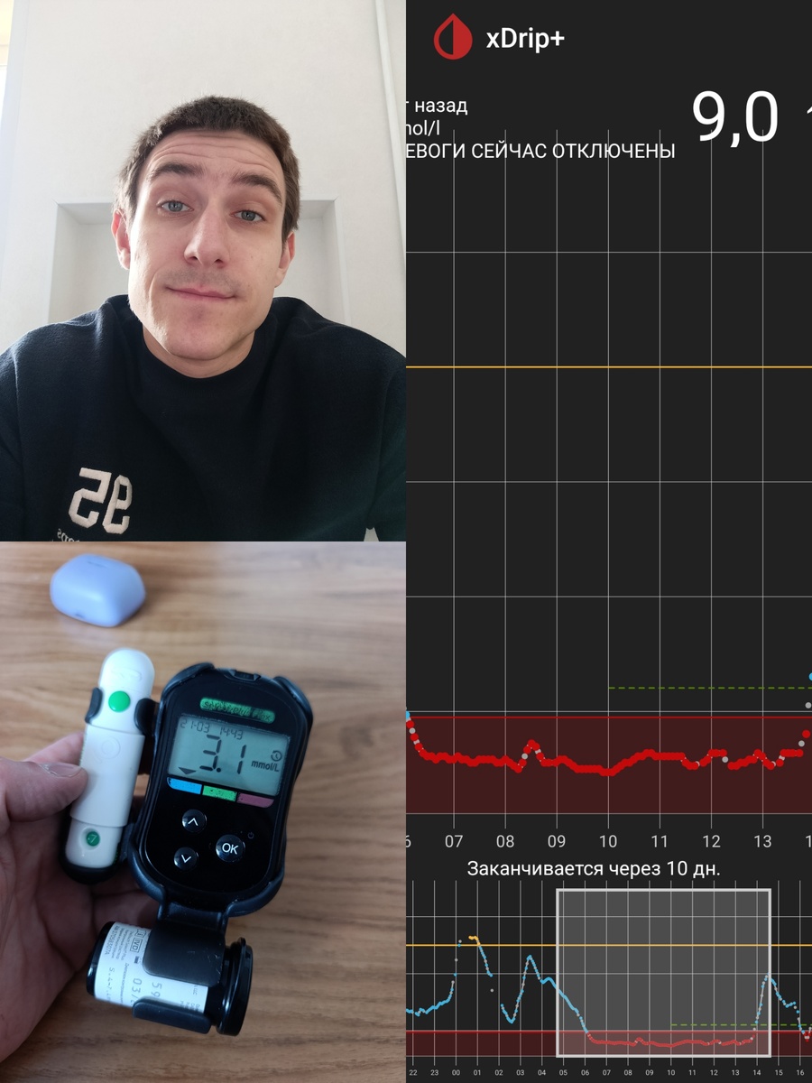 Конечно, я просыпался и видел график, но никаких симптомов гипо я не чувствовал и больше поверил своим ощущениям, а не мониторингу (думал что либра как раз занижает на единицу и сейчас у меня сахар где-то 4.2-4.3 ммоль/л, можно спать дальше спокойно). А вставать и перепроверять глюкометром