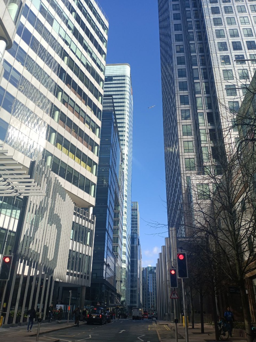 На Собачьем Острове предстает завораживающий вид тянущихся ввысь огромных гигантов из металла и стекла, зеркальными бликами отражающих солнечные лучи.