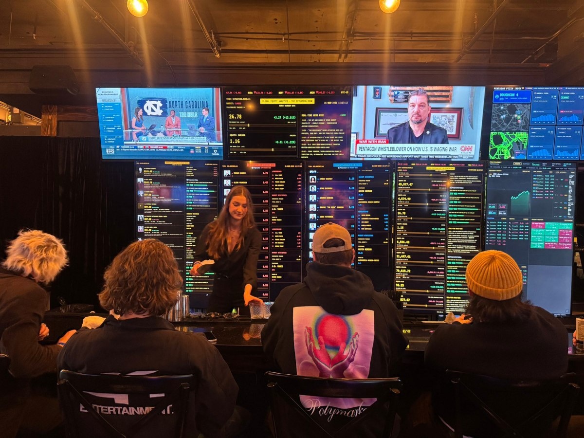 Сервис рынков предсказаний Polymarket запустил бар в Вашингтоне с 80 экранами. Формат заведения напоминает спортбар, однако вместо спортивных трансляций посетители следят за мировыми событиями и биржами, а также делают ставки. В соцсетях пользователи отмечают, что во время открытия из-за технических неполадок мониторы в баре временно не работали. https://dzen.ru/id/5c0e38ff46ef5c00aaa80527