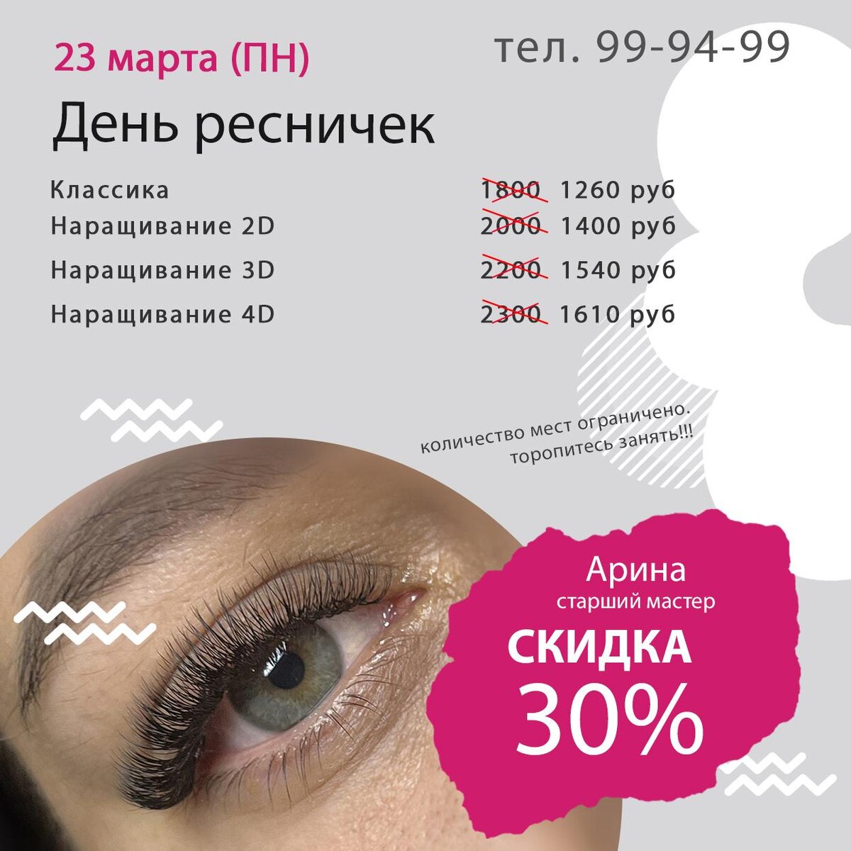 💥🔥🛍23.03 (ПН) День ресниц -30% на любое время у старшего мастера Арины