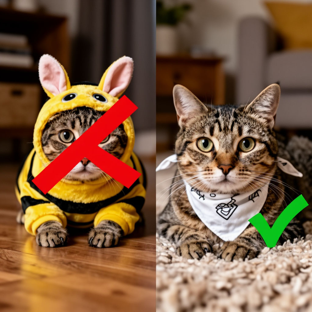 Вы купили костюм пчёлки для кота, сняли видео, получили 1000 лайков. А кот получил стресс, нарушение координации и желание спрятаться под диван на неделю. Хватит мучить питомца ради моды.