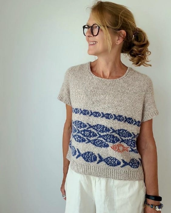 Футболка «Против течения» Дизайн Elenor Mortensen перевод #бесплатное_описание Варианты пряжи: 1) Color City Yak wool (60% пух яка, 20% мериносовая шерсть, 20% акрил, 100г/430м) 2) Пехорка Льняная (55% лён, 45% хлопок, 100 гр/330 м) Спицы Круговые спицы 3 мм длиной 40 см и длиной 80 см Круговые спицы 3,5 мм длиной 40 см и длиной 80 см @myknittedstories 🧶 #вязание_спицами #вязание_схема #футболка Подробное описание в файле 👇