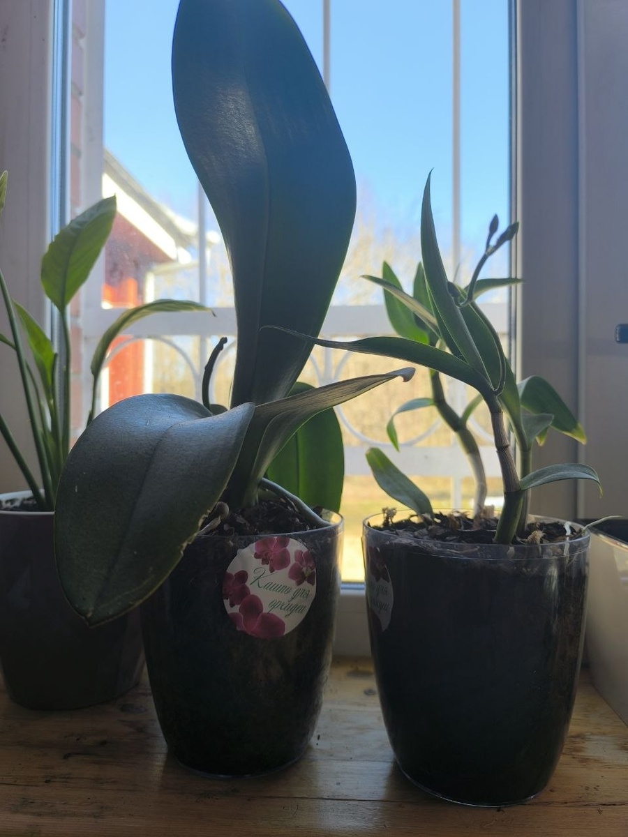 Часть 2. Эти орхидеи появились у меня с разницей в 2 года. Правая малышка была первой. Приехала, белая красавица, вся в цветах, цвела месяц, потом через полгода зацвела повторно и остановилась. И не цветет, и не растёт, замерла. Ещё через год супруг подарил новую орхидею. Розовую, всю в цветах, очень красивую. Я поставила их рядом и каждый день напоминала первой, что она тоже умеет цвести. И знаете, помогло. Спустя неделю, моя малышка выпустила цветочную стрелку и доказала - она тоже может быть красивой. Не мне. Самой себе. Теперь раз в полгода мои подружки орхидеи выпускают цветочные стрелки синхронно, как будто соревнуясь друг с другом. Прямо сейчас я жду, когда они распустятся) Вот такая чудесная цветочная история ☺️ похожа на "человеческую"?