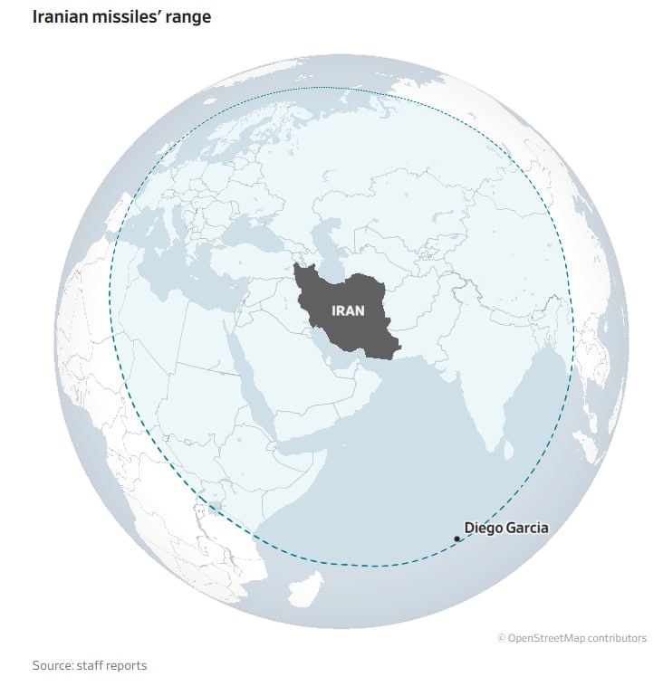 Атака на военную базу Диего-Гарсия в 2500 милях от Ирана это доказала, — WSJ Атака, произошедшая рано утром в пятницу, стала первым в истории применением Ираном баллистических ракет средней дальности , которые способны поразить значительную часть Европы. В пятницу ракеты цели не достигли — одна вышла из строя в полете, а другая исчезла после того, как эсминец ВМС США выпустил по ней перехватчики SM-3, сообщили американские официальные лица. Однако способность Тегерана запустить баллистические ракеты средней дальности продемонстрировала более агрессивную позицию Ирана и прогресс в наращивании потенциала для нанесения ударов далеко за пределами Ближнего Востока. #ПолитикаМИР Telegram | Max | Дзен | VK