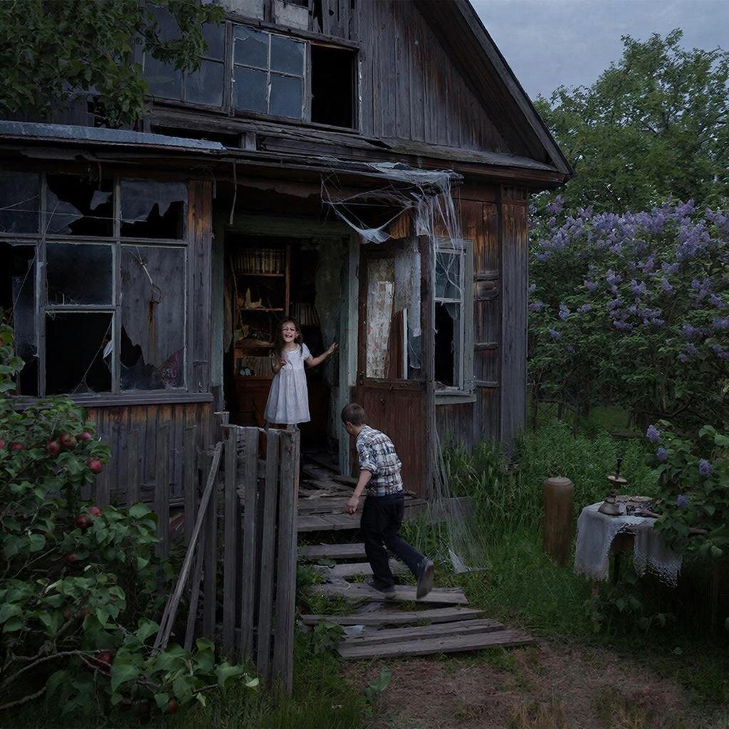 Когда они подошли к дому, солнце уже садилось, и его лучи пробивались сквозь ветви деревьев, создавая причудливые тени. Алексей, его жена Ольга и их дочь Маша вошли внутрь. Внутри царила полутьма, воздух был затхлым, а полы скрипели под ногами.