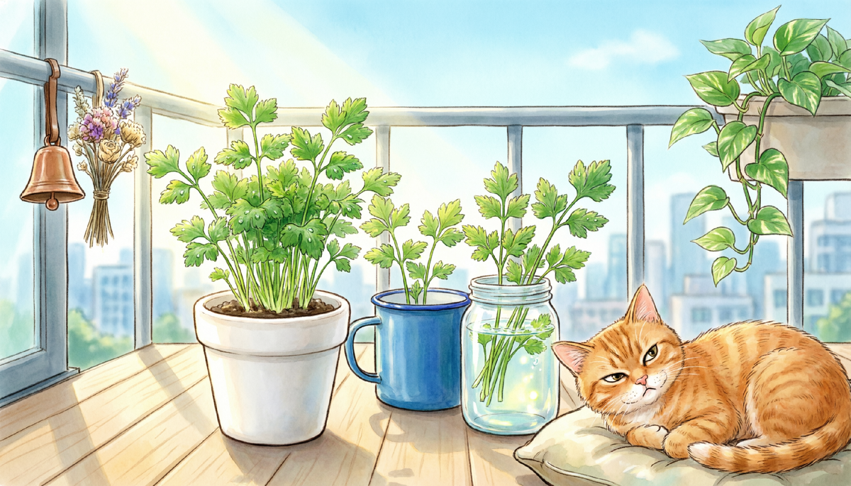 Моя петрушка — это чистый дзен. Я отщипнула веточку — и я счастлива. Я забыла её полить — она приуныла, но не устроила мне экзистенциальный кризис. А если она совсем засохнет... господи, я просто куплю новый горшок за 60 рублей и начну жизнь с чистого листа!