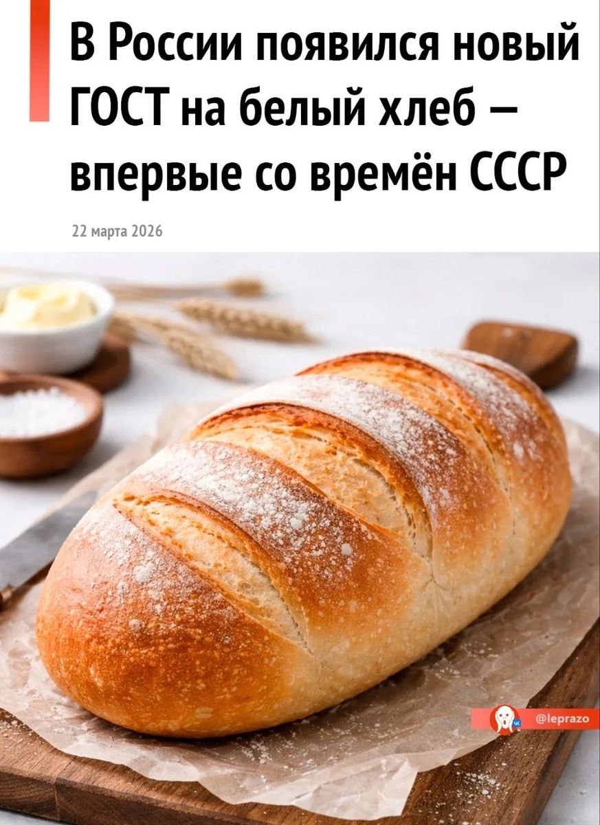 С 1 апреля 2026 года в России вступает в силу обновлённый ГОСТ на белый хлеб: отмена минимальной массы, сокращение сроков выдержки и новые разрешенные добавки. Как это повлияет на цены и ассортимент?. Среди ключевых решений и фактов: С 1 апреля 2026 года в России вступает в силу новый ГОСТ на белый хлеб, отменяющий требование по минимальной массе изделия в 500 грамм; Производители теперь обязаны выдерживать хлеб на предприятии не более 10 часов после выемки из печи, что ускорит оборот продукции; Ранее обязательные рекомендации по срокам реализации хлеба в рознице (24 часа) исключены из нового стандарта… Читать полностью