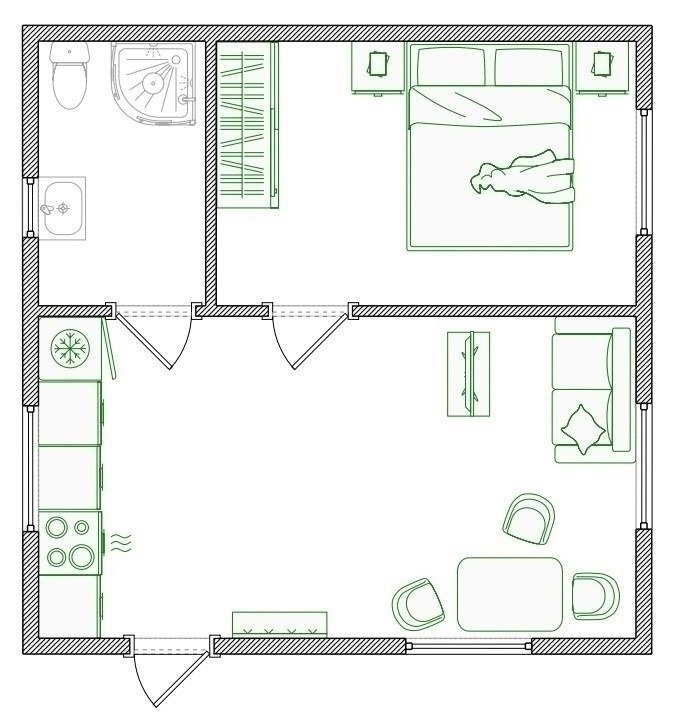 Цены для размера 6х6 м, перегородки, как на представленном плане, входят в расчёт: 💥 в утеплении 100 мм - от 995 000 р. 💥 в утеплении 150 мм - от 1 120 000 р. 🍀 В таком доме можно предусмотреть лофт - спальное место наверху и "второй свет". Желаемые размеры, планировка и комплектация обсуждаются с заказчиком, после этого рассчитывается итоговая стоимость. Можно заказать "холодный контур" под самостоятельное утепление и отделку. _____________________ ⭐ СК Скала. Строим каркасные дома с 2009 года, работаем круглый год. ✅ Мы в МАХ max.ru/bitovkaspb ✅ Мы в ТГ https://dzen.ru/id/62781766a0b2e379ab19b443 ☎ 3170071, +79052227281 🏡 Офис и выставка: С-Пб, ул. Ворошилова, д. 2, территория ДЦ "Охта"