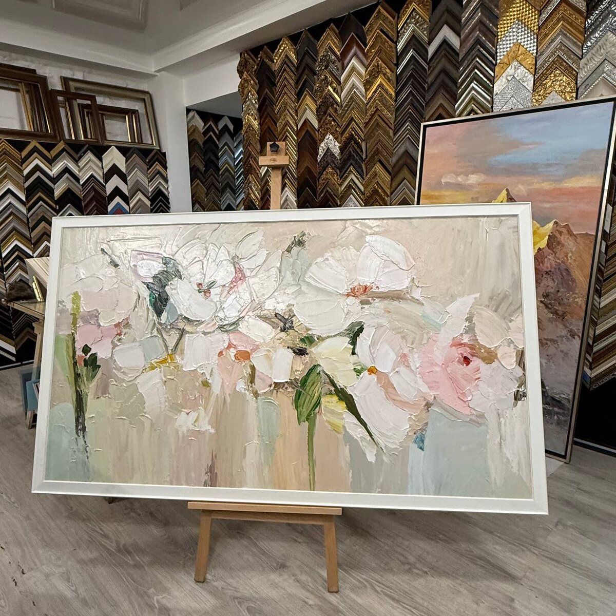 🎨 Интерьерная живопись — это не столько про сюжет или сложную композицию, сколько про ощущение пространства. Широкие мазки, густой слой масла, живая фактура — всё это добавляет глубину, характер и визуальное «дыхание» интерьеру ✨ Часто решает именно палитра — она задаёт настроение и объединяет пространство в единое целое 🎯 Например, эти две работы скоро будут радовать сотрудников офиса одной из компаний, с которой мы сотрудничаем на постоянной основе 🏢 Вообще, оформление офиса картинами (а не привычными постерами или печатными холстами) — это всегда про стиль и статус 💼 Это ощущается сразу, как только переступаешь порог 🚪 Кабинет руководителя, где на стене — не календарь и грамоты, а настоящая живопись, всегда воспринимается иначе 🖼️ Это +100 к статусу без лишних слов 📈 А если эти картины ещё и оформлены со вкусом в багет — это уже высший пилотаж 🔥✨ Но давайте пару слов про оформление: 🌸 Цветы оформлены в испанский деревянный багет — воздушный, нарядный и при этом сдерж