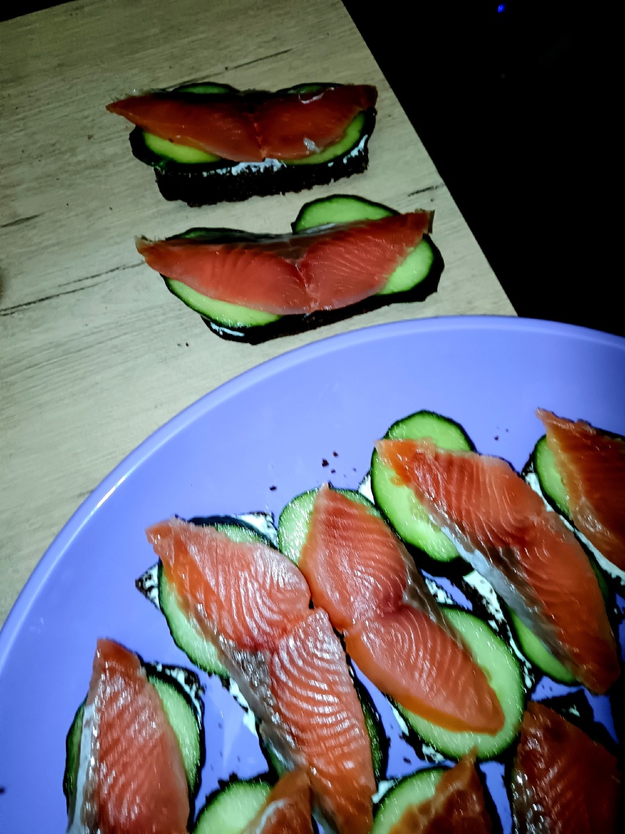 Она намазывала хлеб тонким слоем сливочного масла — не слишком много, но достаточно, чтобы хлеб блестел. Затем аккуратно укладывала ломтики красной рыбы, которые казались почти прозрачными при свете утра. Несколько капель лимона, щепотка укропа — и аромат наполнял комнату: свежесть моря и сладость масла смешивались, как старые фотографии и разговоры.