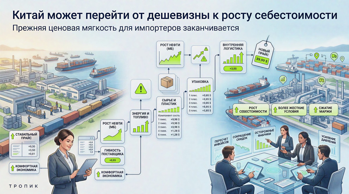 Главный вывод простой. Китай не перестает быть ключевой фабрикой мира. Но он может перестать быть источником прежней ценовой мягкости. А для импортера это уже не фоновая новость, а прямой сигнал: старые расчеты пора обновлять до того, как это сделает поставщик.