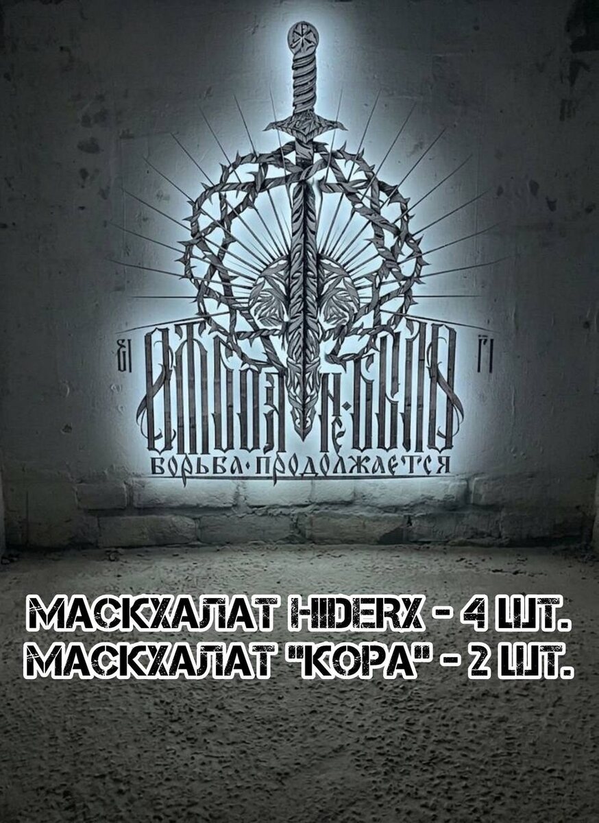 необходимы следующие изделия маскировки: - Маскхалат HIDERX в количестве 4 штук. - Маскхалат "КОРА" в количестве 2 штук. Помощь : https://pay.cloudtips.ru/p/1eb40472 Производитель : HIDERX
