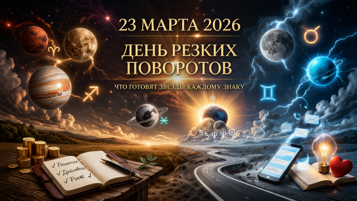 23 марта 2026 года может стать днём, когда многое сдвинется с места - в мыслях, планах, отношениях и решениях. Иногда именно такие повороты выводят нас на правильную дорогу, даже если сначала кажутся неожиданными.