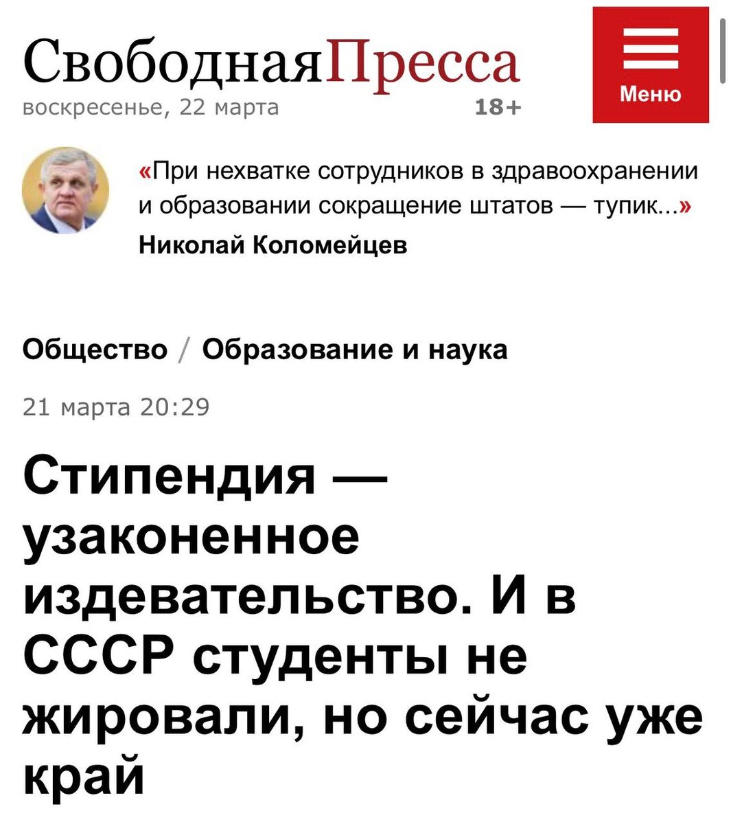 ? ΠΠΎΠΉ ΠΊΠΎΠΌΠΌΠ΅Π½ΡΠ°ΡΠΈΠΉ Π²ΡΡΠ΅Π» Π² Β«Π‘Π²ΠΎΠ±ΠΎΠ΄Π½ΠΎΠΉ ΠΏΡΠ΅ΡΡΠ΅Β» β ΠΈ Ρ ΡΠ°ΠΌ Π΄ΠΎΠ²ΠΎΠ»ΡΠ½ΠΎ ΠΆΡΡΡΠΊΠΎ ΡΠ°ΡΠΊΡΠΈΡΠΈΠΊΠΎΠ²Π°Π» Π½ΡΠ½Π΅ΡΠ½ΠΈΠΉ ΡΡΠΎΠ²Π΅Π½Ρ ΡΡΡΠ΄Π΅Π½ΡΠ΅ΡΠΊΠΈΡ