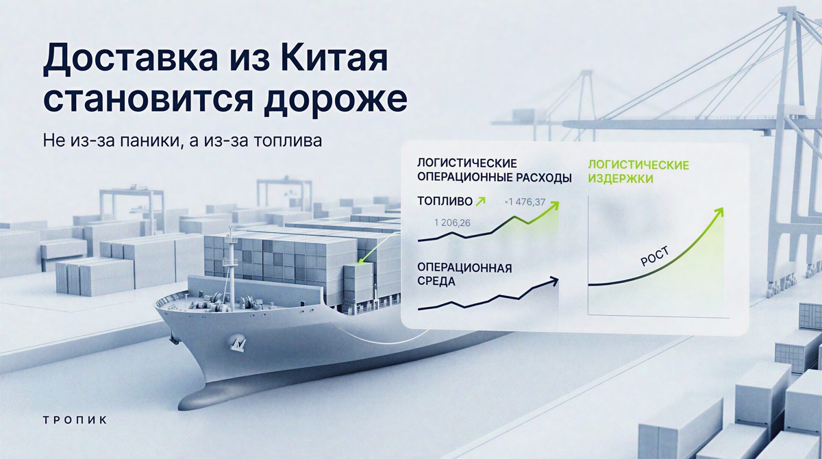 Для бизнеса сейчас важен не столько сам график нефти, сколько то, что происходит с физическим рынком топлива и поставок. На фоне напряженности на Ближнем Востоке резко выросли цены на реальные партии нефти и нефтепродуктов, а часть ближневосточных поставок выпала из цепочек. Параллельно Азия наращивает закупки российского топлива, чтобы закрыть образовавшийся разрыв. Это уже не новостной фон, а прямое давление на стоимость перевозки, производства и закупки товара. Главный сдвиг в том, что дорожает не только сырье как биржевой индикатор. Дорожает сама операционная среда: топливо для морских линий, внутренней перевозки, перевалки, портовой работы и производственной логистики. Когда рынок заходит в такую фазу, цена товара из Китая меняется не всегда сразу на фабрике, но почти всегда начинает меняться по всей цепочке до полки. Китайский товар редко дорожает одномоментно. Сначала меняется стоимость энергии и топлива. Затем дороже становится внутренняя логистика, упаковка, часть химического