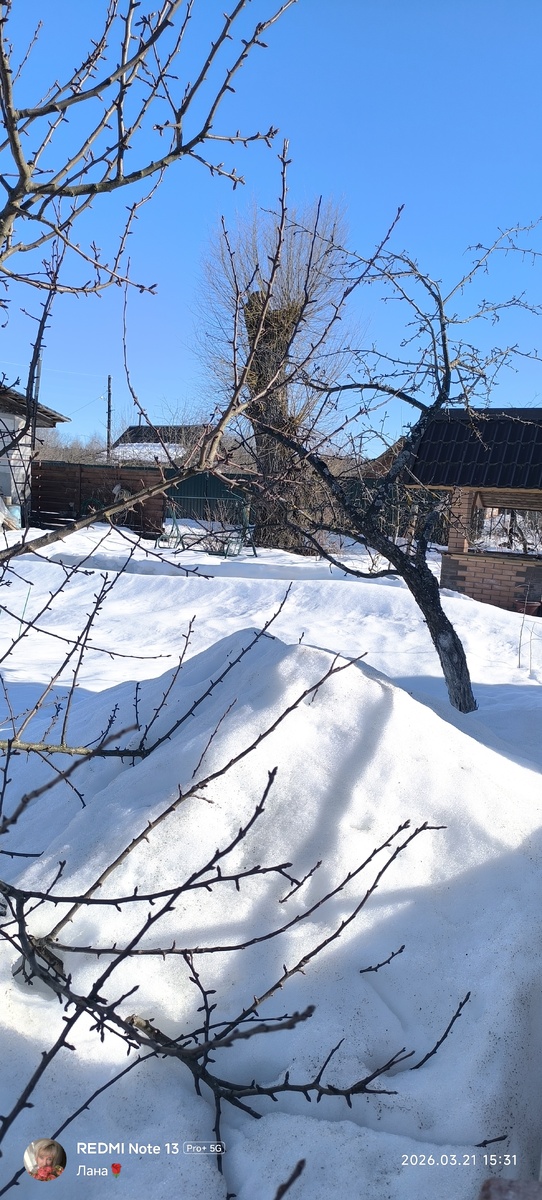 В планы входило обрезка и побелка деревьев, проверка состояния парника, да и так, просто хотя бы одним глазком посмотреть, как там мои любимые розочки перезимовали.