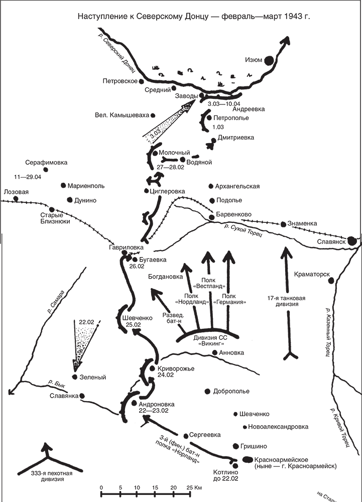 К 21 февраля немцам фронт на реке Миус удалось удержать с помощью оперативной группы «Фреттер-Пико»,