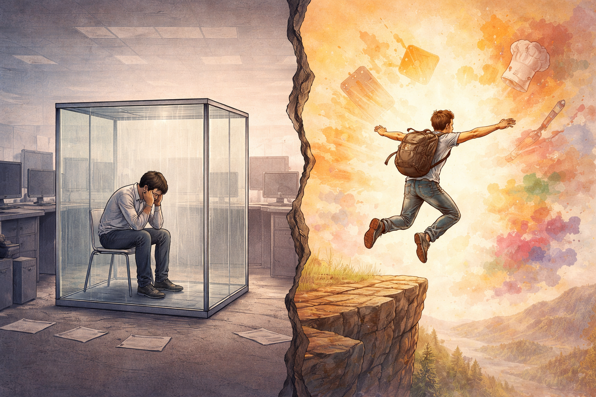 Иногда мы сидим на ненавистной работе не потому, что не можем уйти, а потому что боимся свободы. Боимся, что без начальника и графика мы развалимся. Боимся, что не найдём себя. Боимся, что окажется, что проблема не в работе, а в нас.