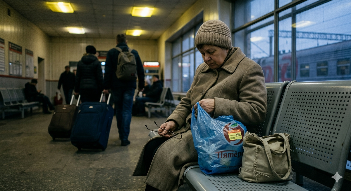 Вчера я поехала на вокзал встречать подругу. Электричка задерживалась, я зашла в зал ожидания погреться. И там, в углу, на железном сиденье, свернувшись калачиком в своем старом пальто, спала... моя мама. Рядом стоял один-единственный пакет с вещами.