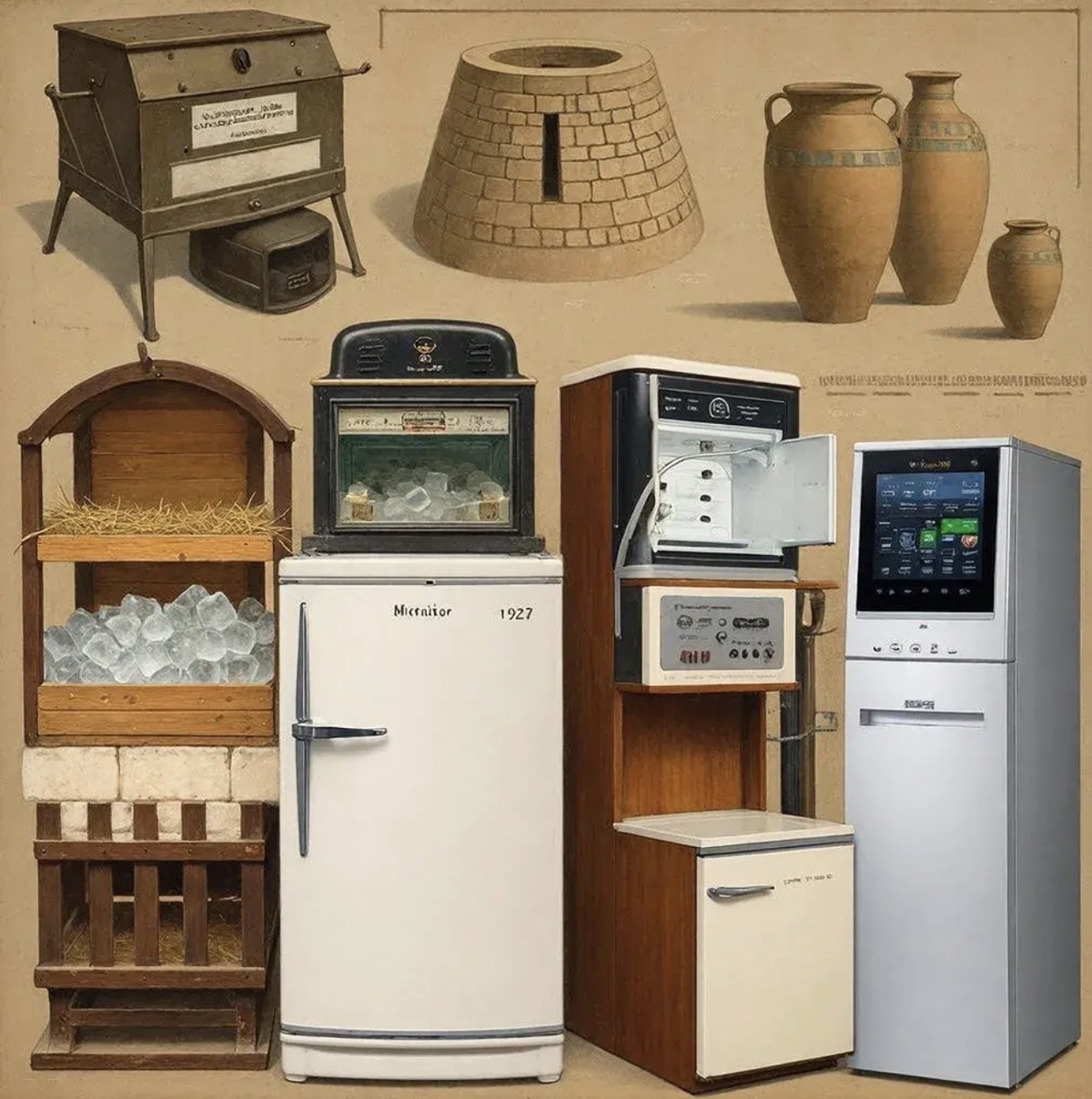 До появления холодильников люди использовали природные способы сохранения холода. В северных странах продукты хранили в снегу или ледниках, в Древнем Египте — в глиняных кувшинах, а в Персии строили специальные купольные сооружения — яхчалы, где лёд сохранялся даже в жару. В России и Европе были популярны ледники: глубокие подвалы, где зимой заготавливали лёд, пересыпали его опилками и хранили продукты до следующего сезона. Лёд был дорогим товаром, а профессия ледореза — одной из самых опасных.