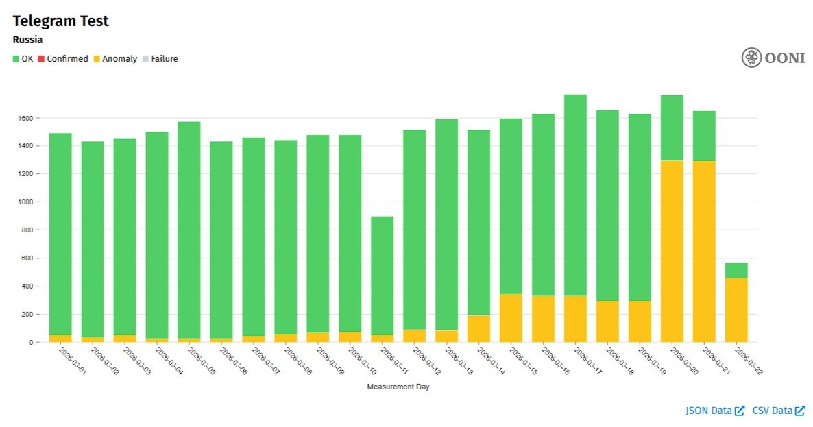 % По данным независимого проекта OONI, к 21 марта 2026 года доля сбоев при запуске Telegram в России составила 77%. 19 марта этот показатель был на уровне 18%. Доля аномалий при попытке использовать Signal и WhatsApp достигла 87% и 89% соответственно. https://dzen.ru/id/5c0e38ff46ef5c00aaa80527