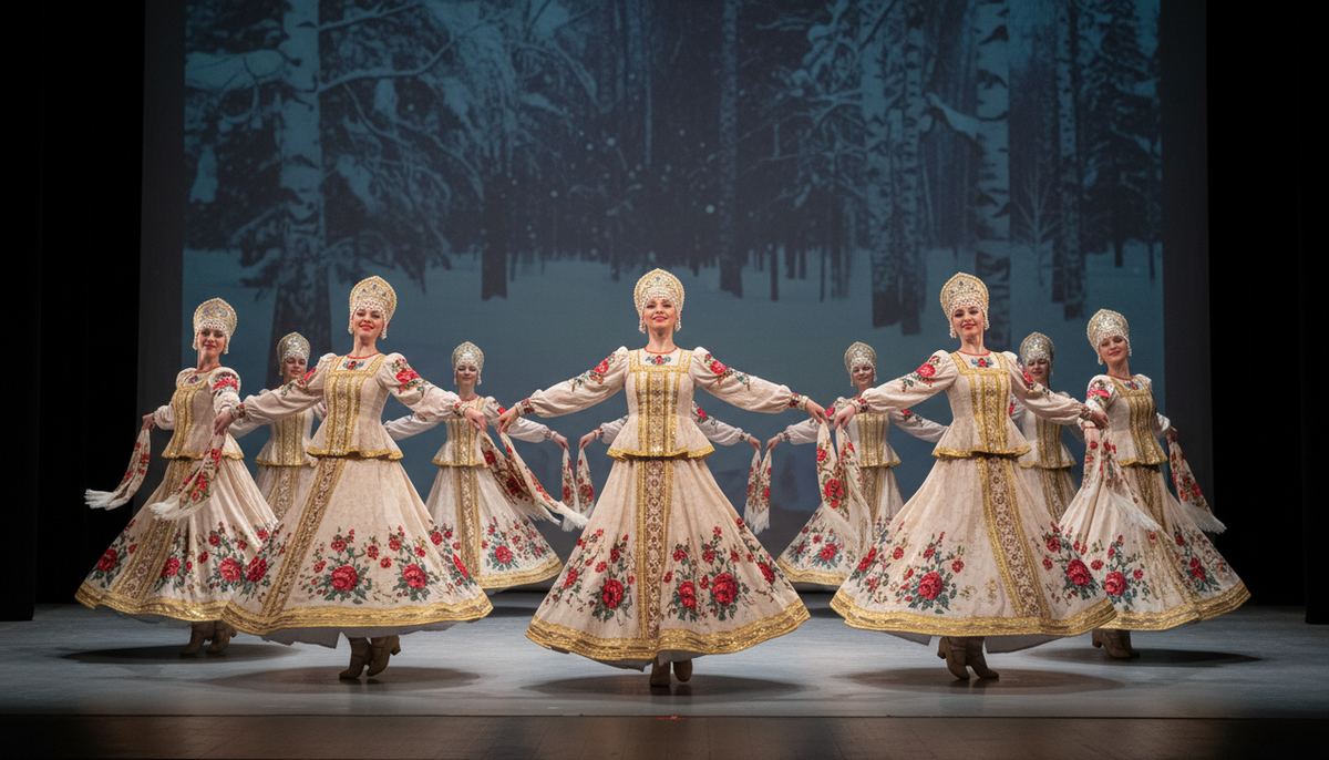 Истоки вдохновения: Идею своего знаменитого хоровода Надежда Надеждина увидела на старинной литографии, изображавшей девушек в сарафанах с березовыми ветвями . Она мечтала вывести русский хоровод на большую сцену и создать на его основе уникальный, ни на что не похожий танец. «Плывущий шаг» — главная тайна: Надеждиной удалось создать уникальный «плывущий шаг». Длинные сарафаны скрывали движения ног, создавая полную иллюзию, что девушки не идут, а скользят по сцене, как будто она вращается под ними . Эта загадка была визитной карточкой коллектива, и многие зрители, особенно за рубежом, предполагали, что артисты используют ролики. Образ русской души: По словам самой Надеждиной, в центре любой работы ансамбля был «поэтический образ русской девушки». Она стремилась выразить чистоту и величие русского народного искусства, делая его современным и понятным самому искушенному зрителю.