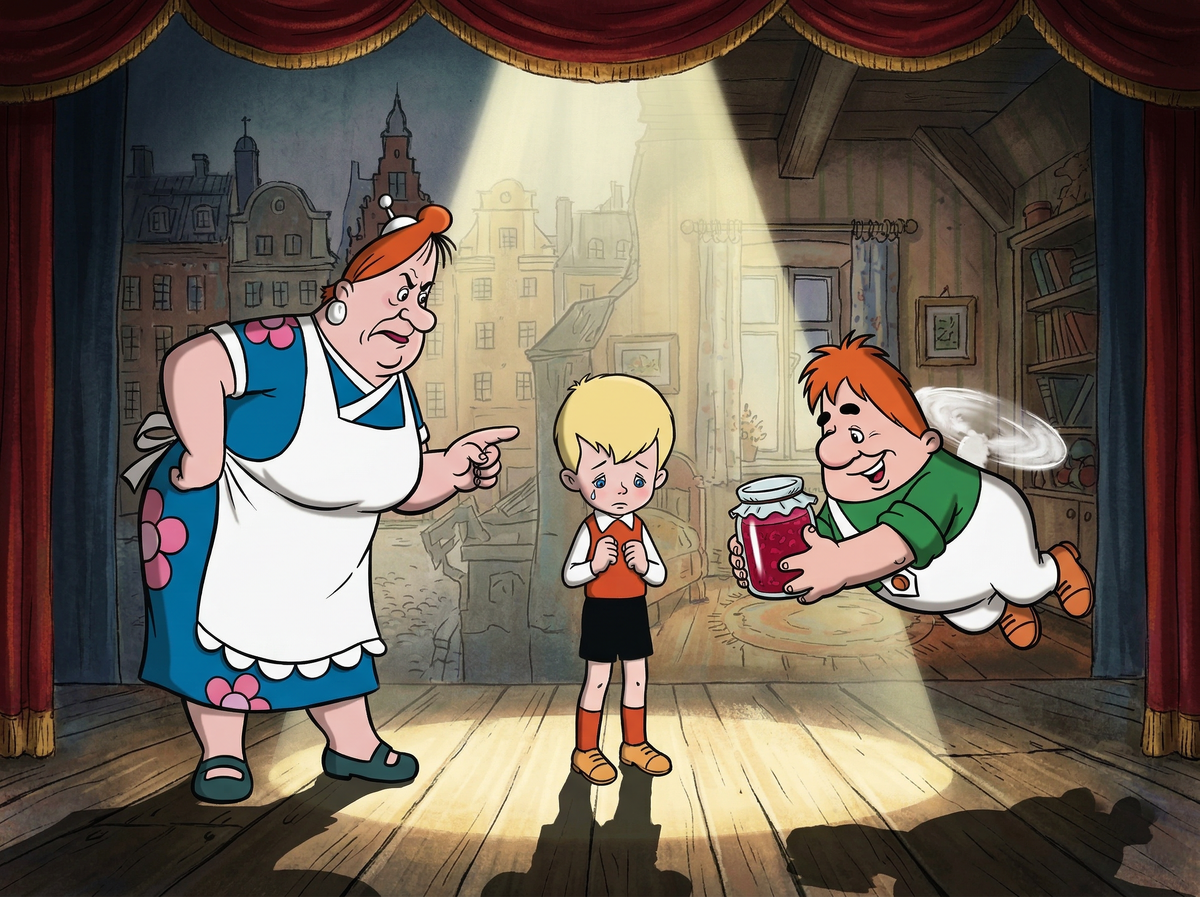 Та самая жестокая «домомучительница». Она точно знает, как «надо» и как «правильно». Это голос вашего синдрома «Я сама». За любую оплошность, слабость или попытку отдохнуть она устроит вам моральную порку и запрет в темной комнате с чувством вины. 🚁 Карлсон (Ваш Спасатель)