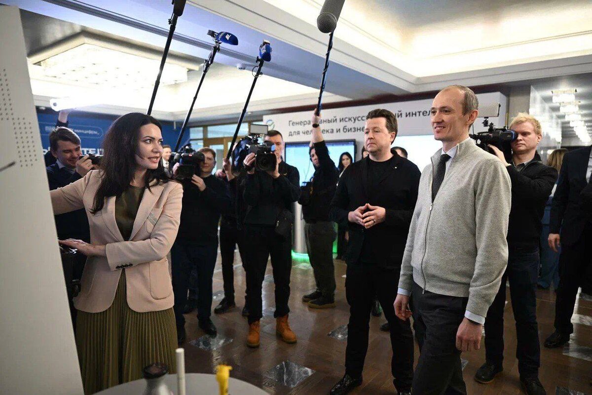веселее. Андрей Белевцев, руководитель блока «Технологическое развитие» Сбера, продемонстрировал заместителю Председателя Правительства Дмитрию Григоренко последние разработки. На выставке можно было увидеть антропоморфного робота Грина, который, похоже, готов заменить нас на всех совещаниях! 😂 Также представили инновационный банкомат и ИИ-помощника ГигаЧат, который, возможно, знает больше анекдотов, чем ваши друзья. Кроме того, в экспозиции был целый набор продуктов и решений в области медицины, образования и разработки. Так что, если вы думали, что ИИ — это только для научной фантастики, то вы явно не видели Грина в действии!