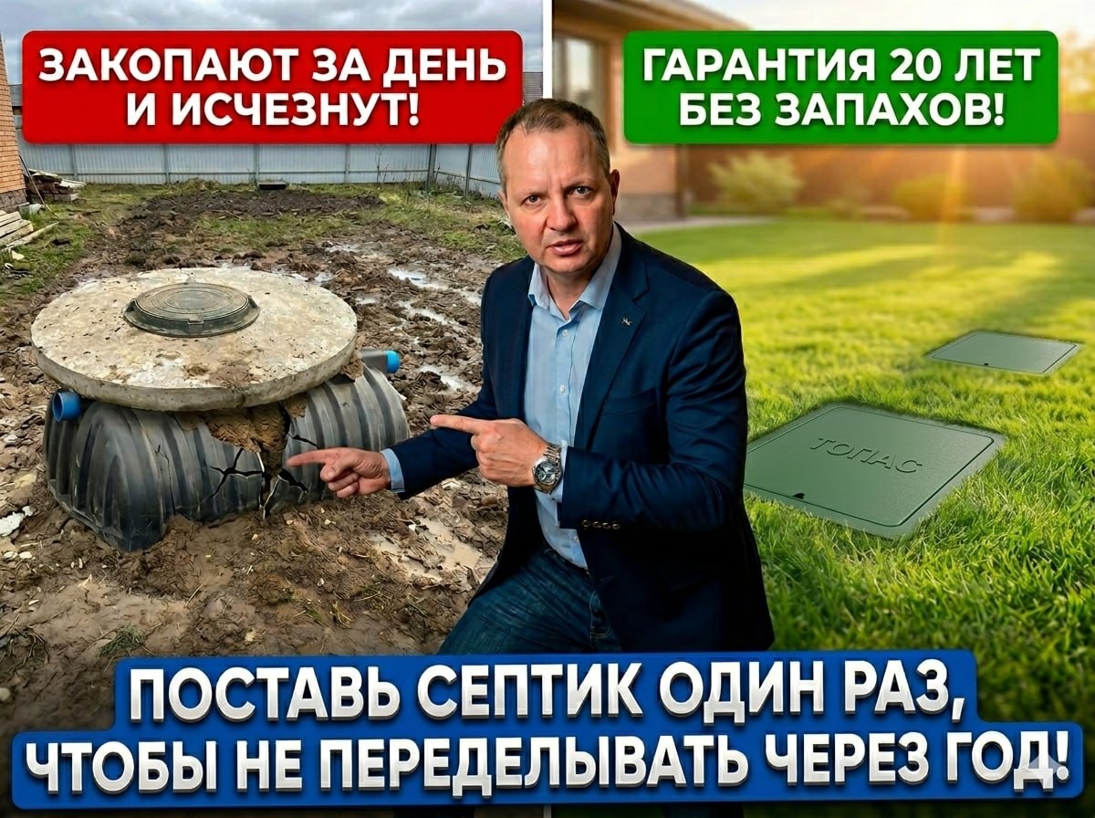 🚨 Почему каждую весну бригад-шабашников становится втрое больше? Конец марта. Открываете Авито, вводите запрос "установка септиков" и глаза разбегаются. Огромное количество объявлений типа - «Я частный мастер. Септик под ключ — на 40% дешевле, чем в компаниях!», «Ставим быстро, гарантия!», «Звоните — приедем завтра!», хотя еще месяц назад подобных объявлений были единицы. Или в вашем СНТ появились незнакомые ребята на газели. Ходят по участкам и предлагают: «Септик поставим быстро и недорого», объясняя низкую цену тем, что у них нет руководителей, управленцев, аренды офиса и иных затрат компаний. Это не случайность. Это бизнес-модель. Весна-лето — пиковый спрос на септики. Люди открывают дачный сезон, начинают стройку, вспоминают про канализацию. Очереди у нормальных компаний — на 1-2 недели вперёд. И вот тут появляются они. Люди-"СептикОченьДешево". Кто эти люди? — Бывший сантехник с племянником и лопатой — Строительная бригада, которая «и септики умеет» — Перекупщик: договор