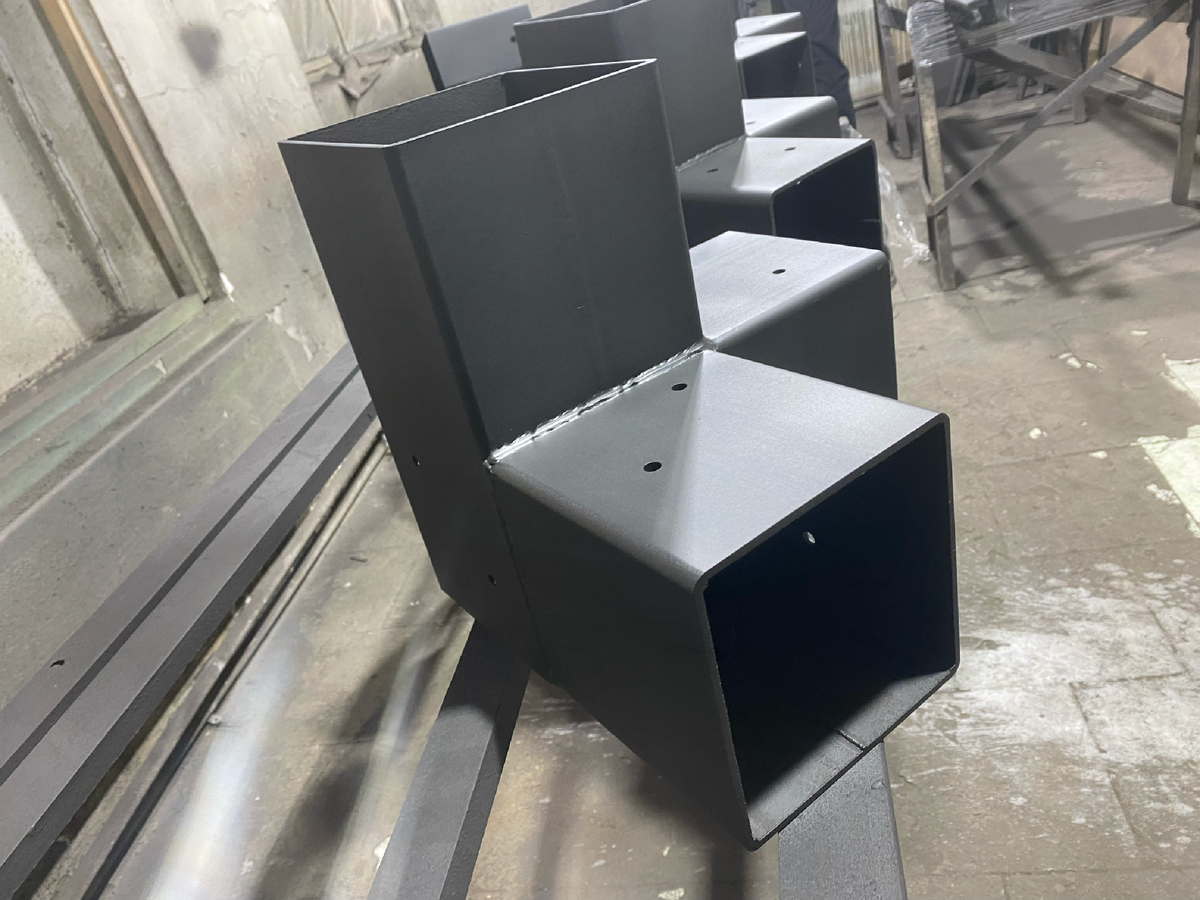 Коннекторы для бруса 150×150 — это усиленные металлические элементы, предназначенные для сборки каркасов беседок, веранд, навесов и других деревянных конструкций. Они позволяют быстро и надежно соединять массивный брус без сложных столярных операций и обеспечивают жесткость всей конструкции. При работе с таким сечением особенно важно качество крепежа, так как нагрузки здесь значительно выше, чем у стандартных решений. Для бруса 150×150 применяются коннекторы с внутренним размером 152×152 мм. Такой зазор сделан специально — он обеспечивает правильную посадку бруса и необходимое пространство между деревом и металлом. Это необходимо потому что: Благодаря этому каркас беседки, веранды или навеса служит дольше и сохраняет стабильность. При производстве коннекторов для бруса 150×150 важнейшим параметром является толщина металла. Оптимальный вариант — сталь 4 мм. Изделия из металла 2–3 мм не дают достаточной жесткости при таких нагрузках, особенно если они изготовлены из листового материала.